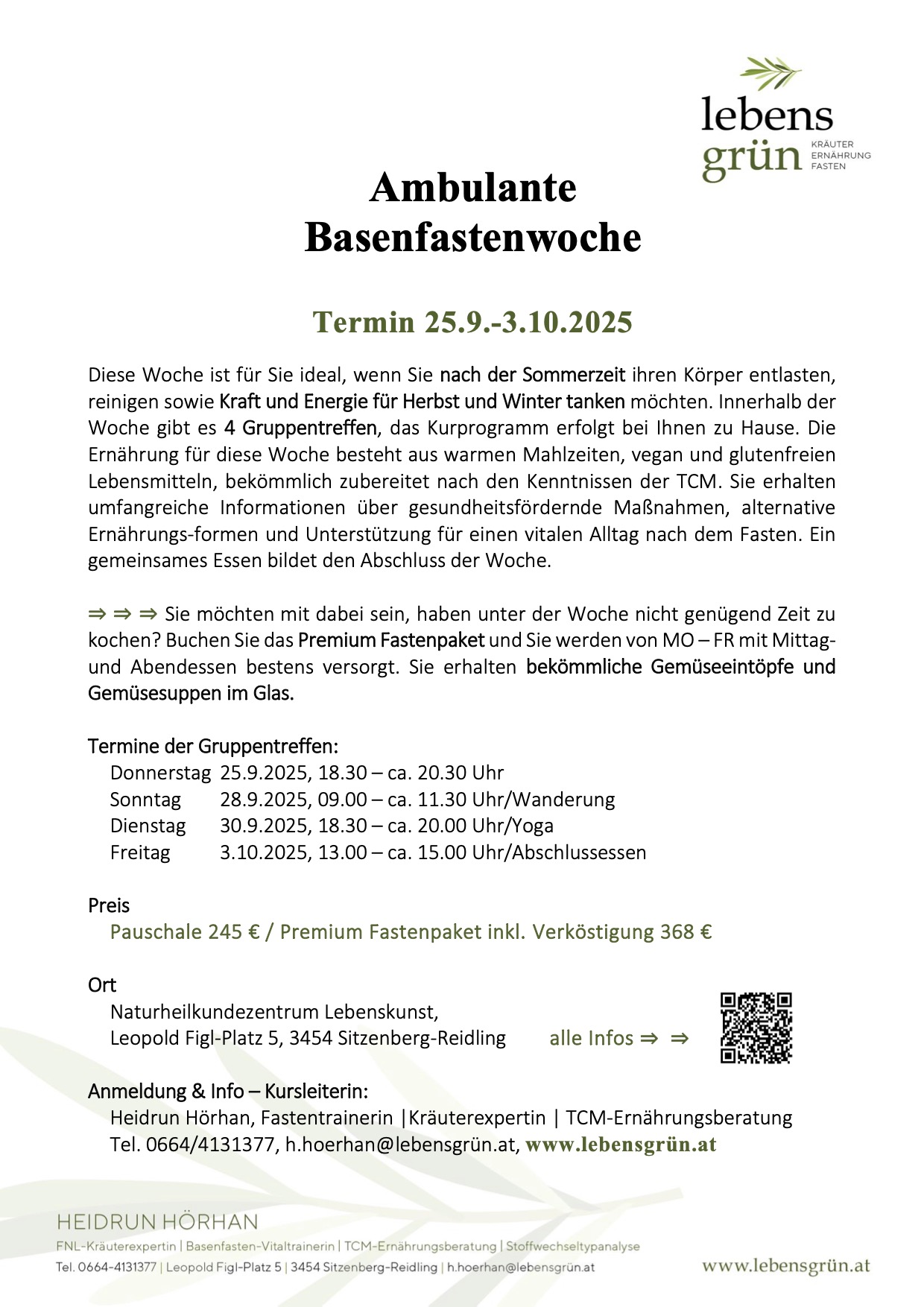 Terminvereinbarung Dienstag bis Freitag 9.00 bis 12.00 Uhr unter 0680 1582188